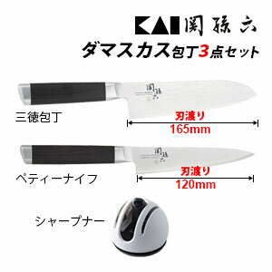 激安直営店 日本製 ダマスカス 包丁セット 関孫六 貝印 3点セット 送料無料 包丁 ダマスカス包丁 器 包丁研ぎ シャープナー ペティーナイフ 三徳包丁 包丁セット Chimalhuacan Gob Mx