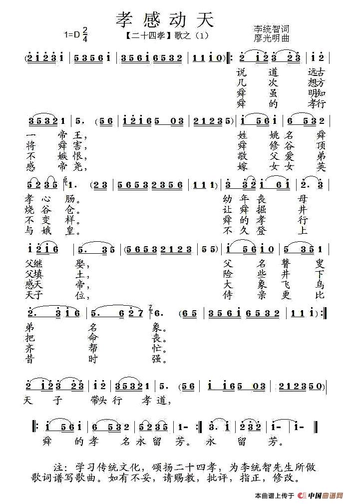 孝感动天 组歌 二十四孝 之一 民歌曲谱 中国曲谱网