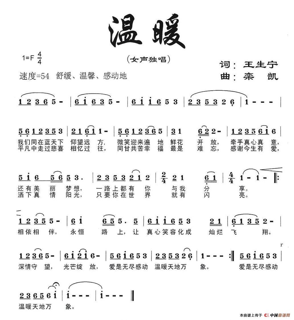 温暖简谱 王生宁词栾凯曲 栾凯原创曲谱专栏 中国曲谱网